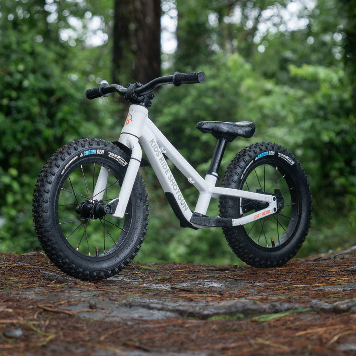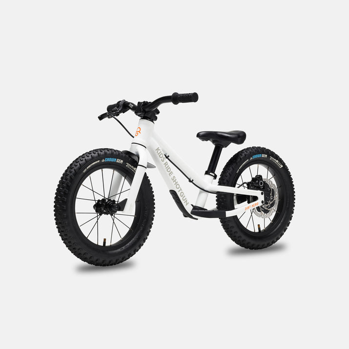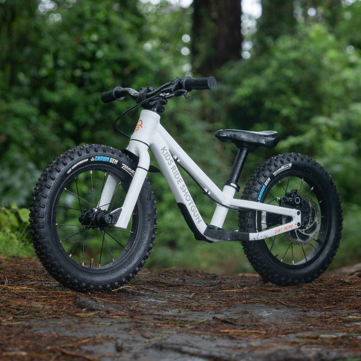 Kids Ride Shotgun may just have released the raddest balance bike around! We're talking chunky Vee Tire Co rubber, a Magura hydraulic disc brake and compatibility with dual wheel sizes, allowing an on-trend mullet set-up with super-slack head angle!
