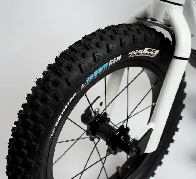 Pneumatic mtb tyres are essential for off-road riding. The air filled tyres with deep tread significantly increase grip, giving your little one the confidence they need to tackle the trails. Air filled tyres also act as suspension, dampening bumps and roots along the way for a smoother ride.
