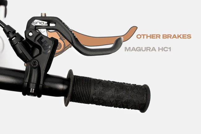 The Magura HC1 brake lever has some of the best reach adjustment on the market – meaning you can set the lever much closer to the handlebars than other brakes, a critical factor in usability for small hands with limited reach.