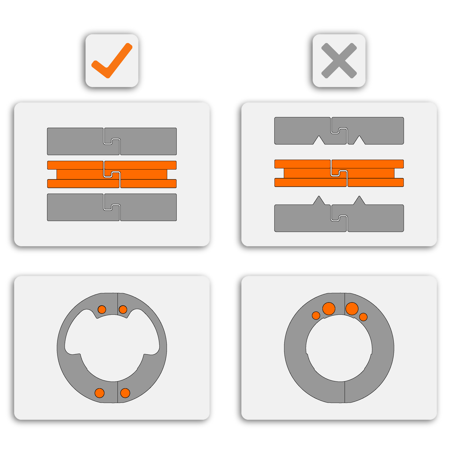 2. The alignment pins on your spacers must match the position of the alignment holes on the Shotgun spacer.